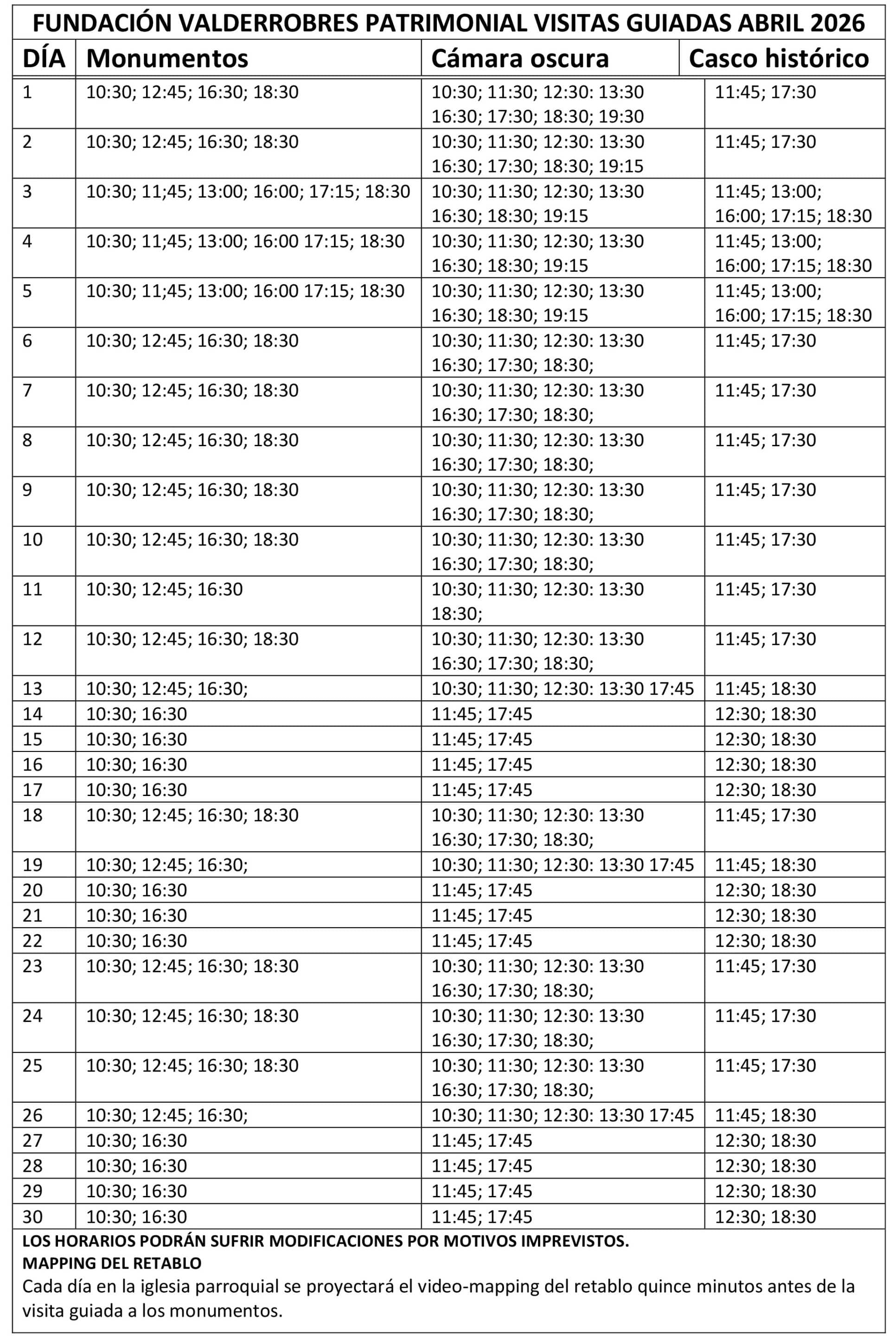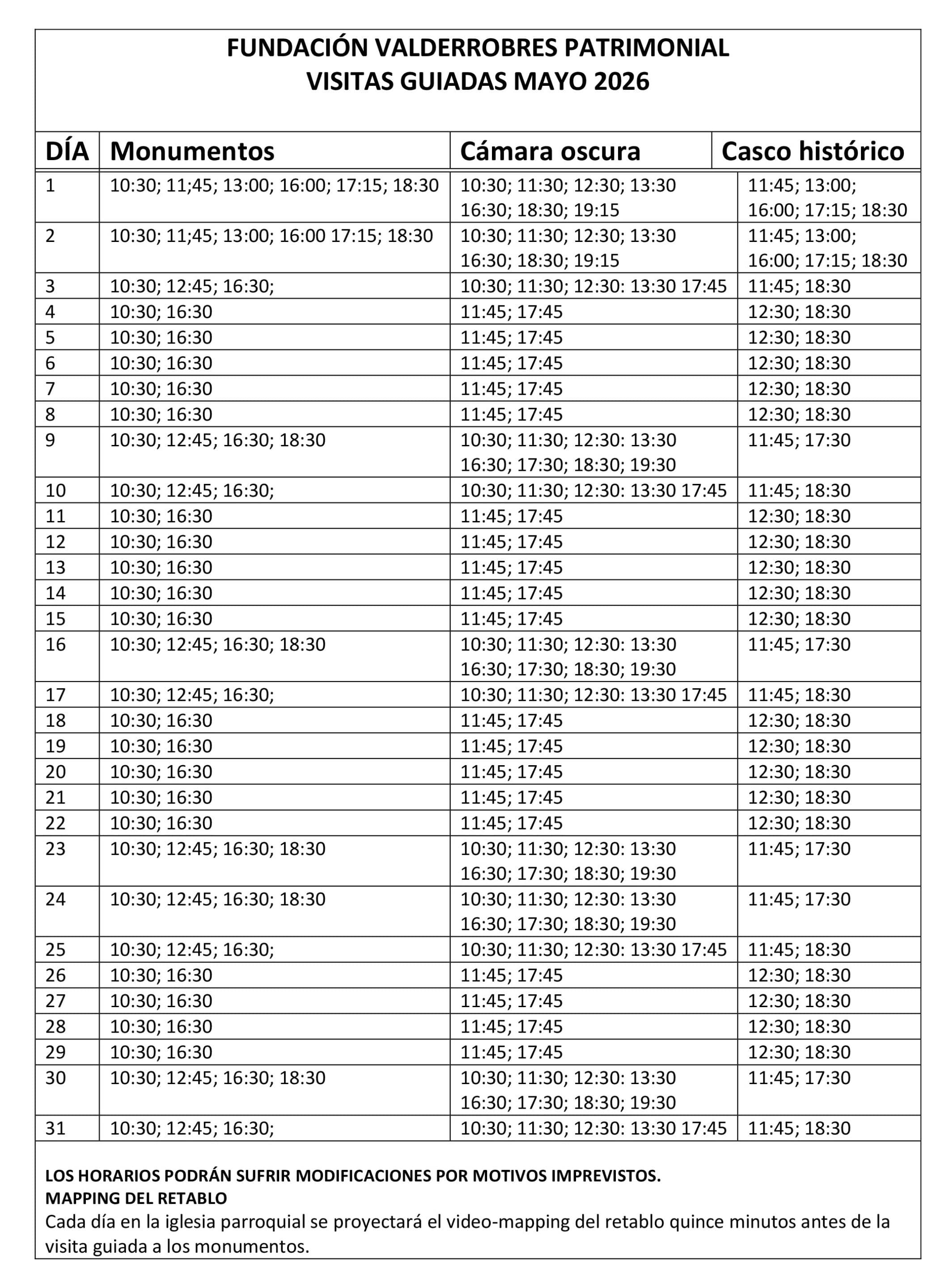 El video-mapping del retablo se proyecta 15 minutos antes de las visitas guiadas y es muy recomendable.